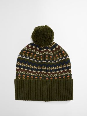 3. Barbour Marlow Fair Isle Pom Beanie Hat Olive